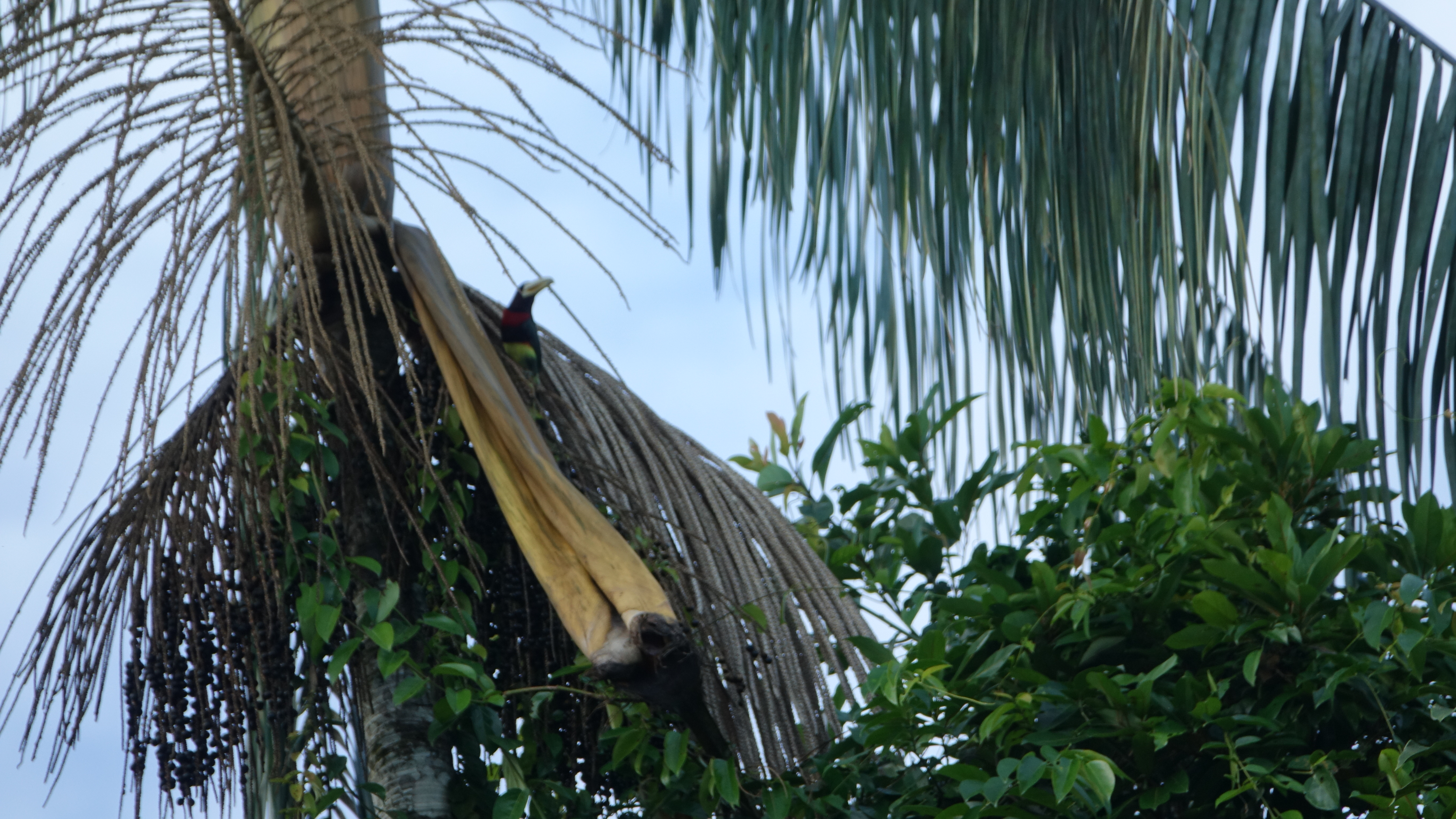 Les photos terminées nous continuons pour voir un nouvel anaconda un peu plus gros enroulé sur lui-même il dort. Evi nous dit que c’est rare d’en voir deux de suite et du coup ce sont les seuls que nous verrons de notre séjour, par contre beaucoup de singes, des oiseaux, des paresseux, des dauphins d`eau douce ….